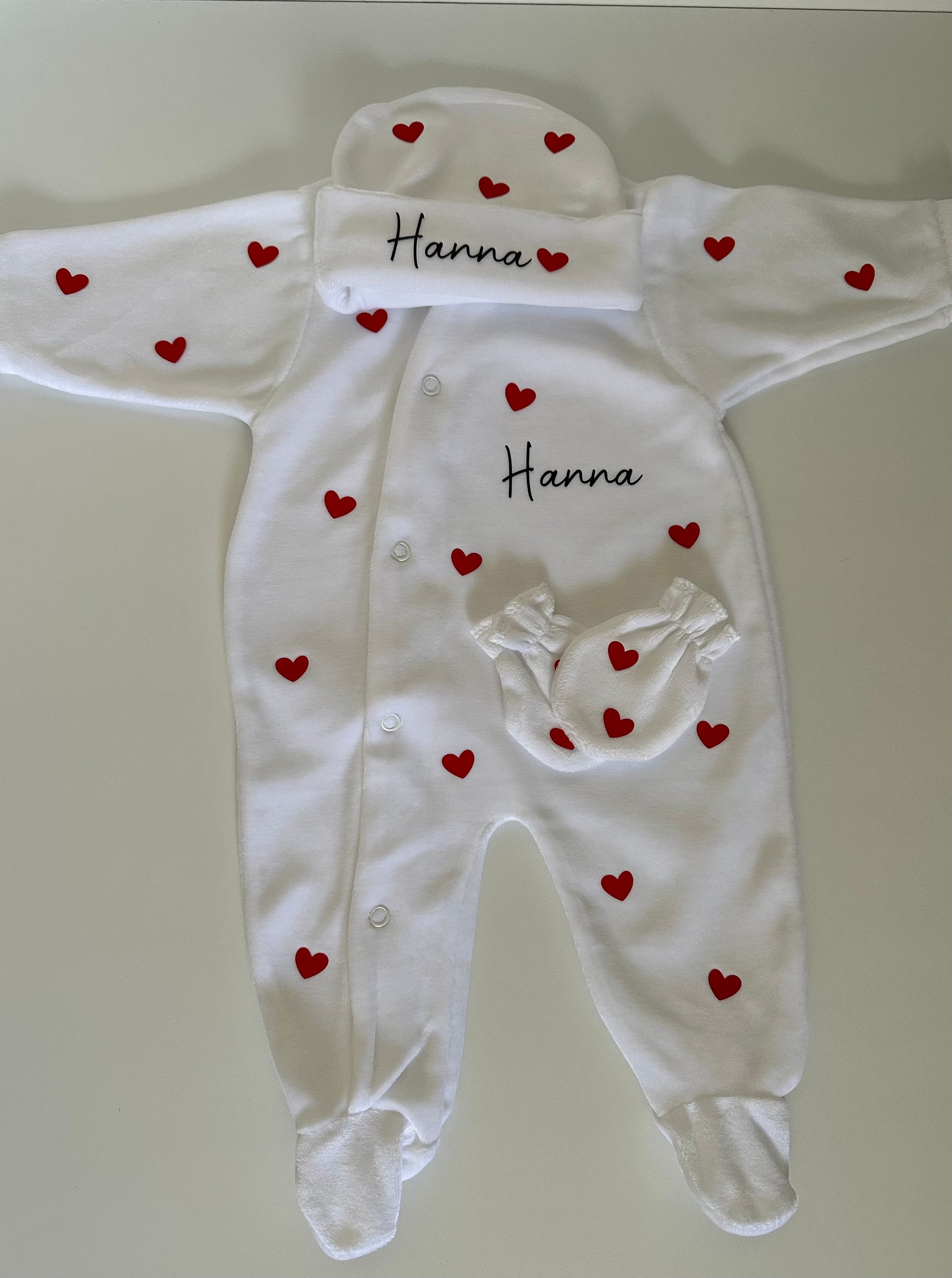 Ce coffret comporte : un pyjama, un bonnet et une paire de moufles.